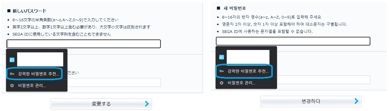 1-6-1. 새 비밀번호 설정의 텍스트칸을 누르면 강력한 비밀번호 추천이 나옵니다.