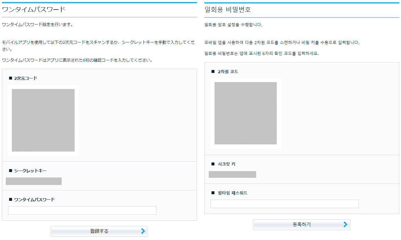2-2. OTP 등록키와 등록 QR코드가 표시될 겁니다.