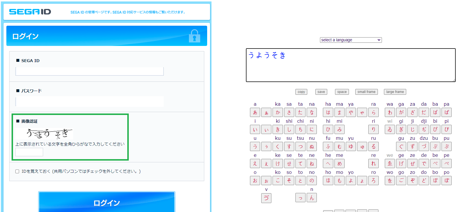 1-1-1. 보안문자가 히라가나로 되어 있습니다.